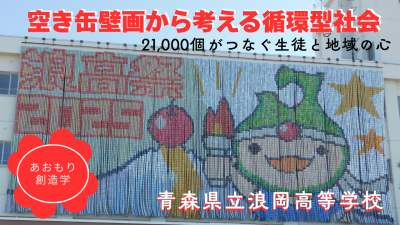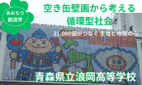 地域の風物詩として注目を集める「空き缶壁画」を通して、青森市のごみ問題を解決するにはどうしたらいいかについて調べ、整理・分析し、本校と地域とのつながりを認識しながら、循環型社会形成に向けた探究活動を行います。