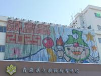 今年度は、第80回国民スポーツ大会及び第25回全国障害者スポーツ大会が2026年9月より、青森県で開催されることから、イメージキャラクターであるアップリート君に国スポ・障スポシンボルの炬火(きょか)を持たせた壁画を制作しました。