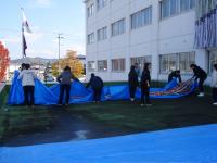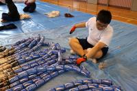 11月4日(火)約1か月の展示期間を終え、空き缶壁画の撤去・リサイクル活動を行いました。